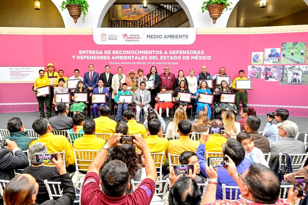 TOLUCA, Estado de México.– La Gobernadora Delfina Gómez Álvarez encabezó la primera Entrega de Reconocimientos a Defensoras y Defensores Ambientales del Estado de México, iniciativa que reconoce el compromiso de ciudadanas y ciudadanos que, con esfuerzo y amor por la naturaleza, protegen los bosques, restauran ecosistemas y defienden a la flora, la fauna y a los seres sintientes.