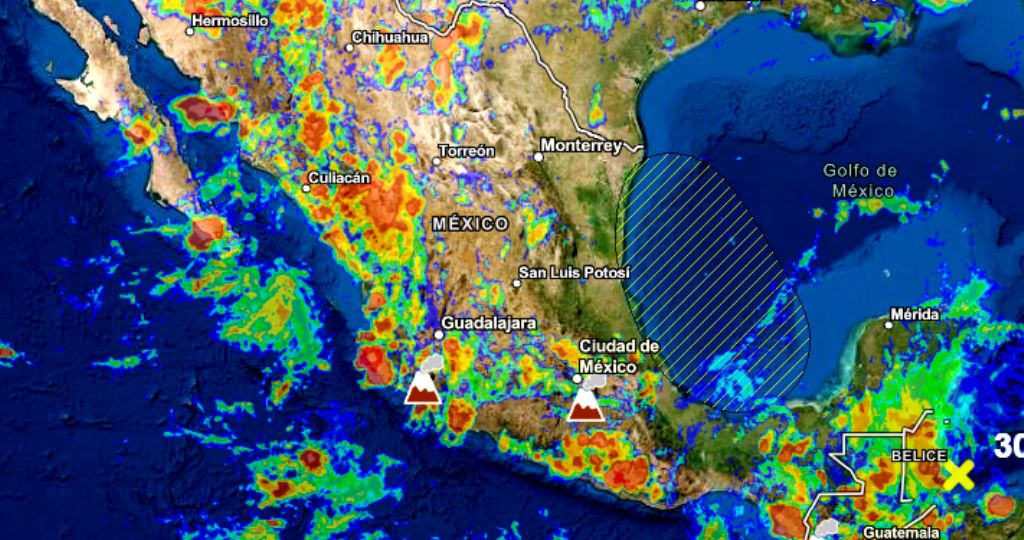 Para hoy, la onda tropical Núm. 23 se desplazará sobre el sureste del país e interaccionará con una zona de baja presión con potencial ciclónico que se ubicará sobre la Península de Yucatán, lo que originará lluvias puntuales intensas en Yucatán, Campeche, Tabasco, Chiapas, Veracruz y Oaxaca, así como puntuales muy fuertes en Quintana Roo.