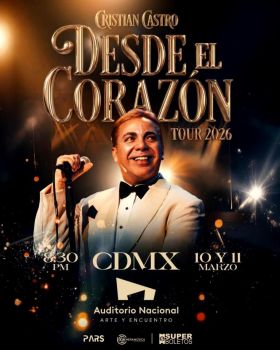 Cristian Castro se presenta en el Auditorio Nacional los días 10 y 11 de marzo de 2026, con cita a las 8:30 de la noche
