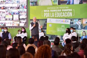 Reciben más de 25 mil estudiantes de 96 municipios del Edoméx, de forma simultánea, becas para impulsar su educación y evitar que abandonen la escuela.