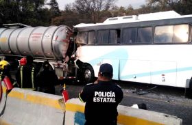 Tremendo choque entre un autobús y una pipa de doble remolque cargada de turbosina.