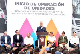 Da Gobernador mexiquense banderazo de salida a mil unidades nuevas, equipadas con sistemas de seguridad, que ofrecerán servicio en la zona oriente de la entidad.