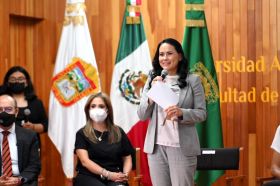 Conversa Secretaria de Desarrollo Social, Alejandra Del Moral Vela, con estudiantes de la UAEM.