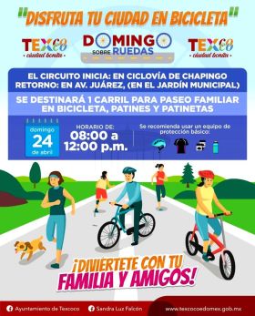 a convocatoria es para todos los texcocanas y texcocanos para que participen en el paseo dominical de Chapingo a Texcoco. De las 7:00 a las 13:00 hora cerraran a la circulación dos carriles de la avenida Juárez y se retiraran autos estacionados.
