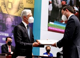 Recibe Rodrigo Macías de manos del Gobernador Alfredo Del Mazo Maza este galardón por ser referente nacional e internacional de la cultura mexiquense, desde hace 50 años.