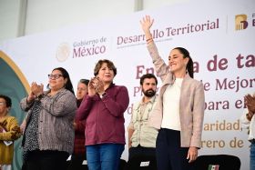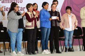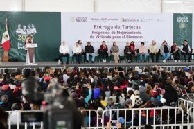 Ambas Mandatarias visitan el municipio de Valle de Chalco para la entrega de 7 mil tarjetas del Programa de Mejoramiento de Vivienda para el Bienestar, de un total de 100 mil que serán entregadas en 10 municipios de la región.