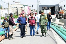 Recorre el albergue instalado en la Colonia Culturas de México; supervisa los avances del Colector Solidaridad y las 18 unidades móviles de la Caravana de la Salud por el Bienestar de Chalco.