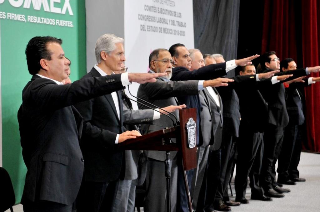 ’Hoy que toman protesta los Comités Ejecutivos del Congreso del Trabajo, Delegación Estado de México, y del Congreso Laboral del Estado de México para el periodo 2018-2020, mi gobierno refrenda su compromiso con el sindicalismo mexiquense’, afirmó.